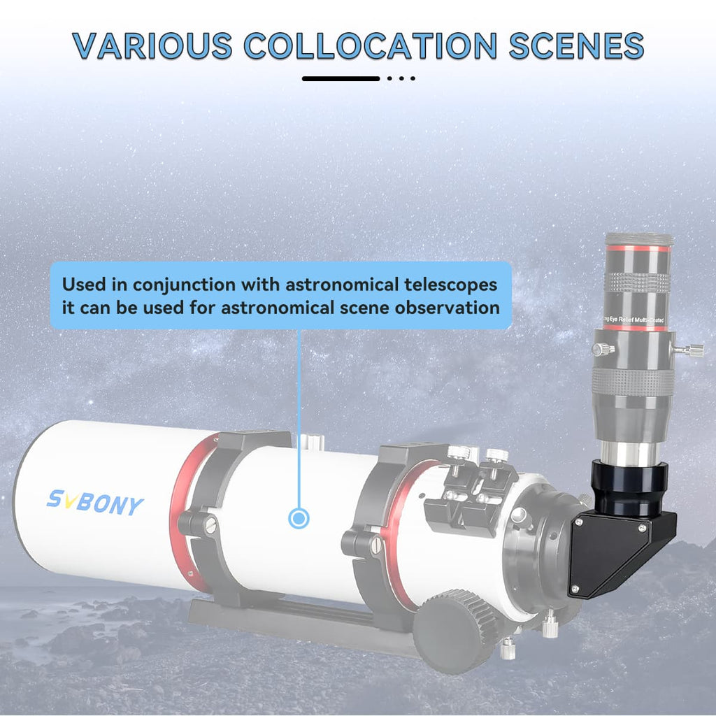 Le miroir diagonal SV222 de 1,25 pouce peut être appliqué aux planètes ; observation visuelle de scènes astronomiques telles que l'espace lointain ; adapté aux télescopes réfracteurs