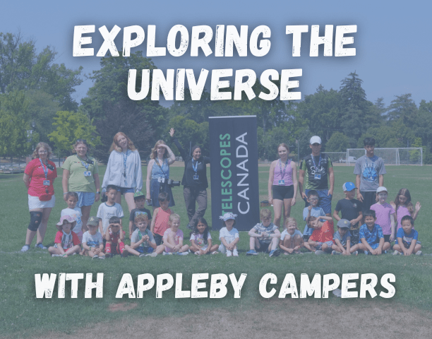L'été dernier, Télescopes Canada a eu le privilège de faire découvrir les merveilles de l'astronomie aux campeurs du Collège Appleby. Chaque semaine, je visitais le camp Espace et Au-delà, travaillant avec des campeurs curieux âgés de 7 à 14 ans. À quelques reprises, j'ai également eu l'occasion d'échanger avec les plus jeunes campeurs du programme Découverte (de 4 à 7 ans), leur permettant même d'observer le Soleil pour la première fois au télescope.