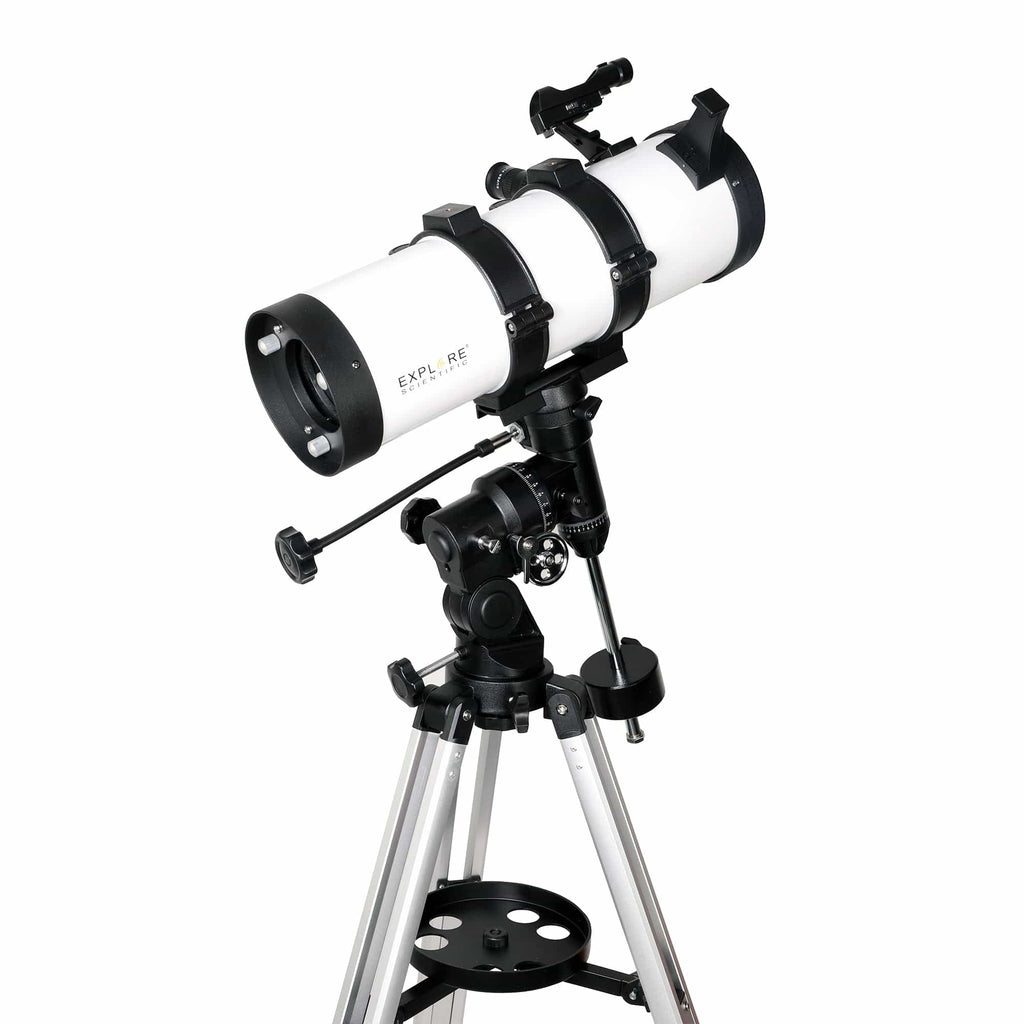 This classic 114mm Newtonian telescope has a primary mirror sized to showcase the Moon, the planets AND bright deep-sky treats without sacrificing portability. It is packaged with an equatorial mount that offers smooth slow-motion controls on the right ascension and declination axes that makes it possible to track your celestial finds with ease and precision. To aid in navigating the night sky, a smartphone mount is included that lets observers attach their smartphone to the telescope and use the AR-Telescope application to locate constellations and planets currently visible. The app also includes an extensive knowledge base filled with astronomical facts. For those wanting to make a foray into deep-sky imaging, the scope has a fast focal ratio of f/4.4 that delivers shorter exposure times. Additional accessories include two eyepieces that provide magnifications of 20x and 50x so users can explore a broader range of objects.