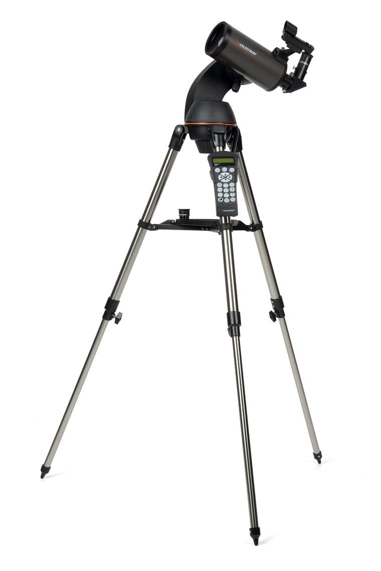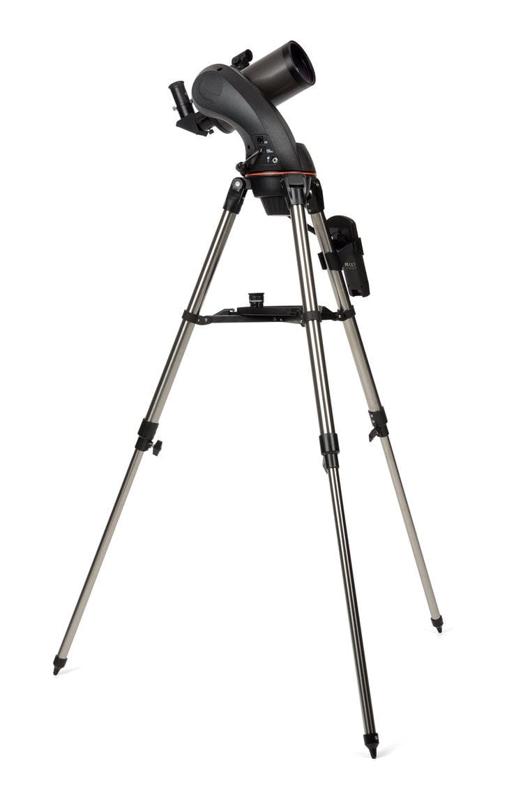 This telescope comes with a pre-assembled, adjustable stainless-steel tripod, quick release fork arm, NexStar+ computerized hand control, 90mm Maksutov-Cassegrain optical tube, and lots of bonus accessories.